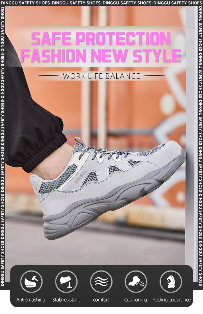 The DINGGU unisex safety sneakers combine sporty comfort with reliable workplace protection. Designed for both women and men, they feature a breathable mesh upper, reinforced steel toe, and cushioned support to keep you safe and comfortable throughout demanding shifts. With multiple color options, they balance durability and style for work and beyond.