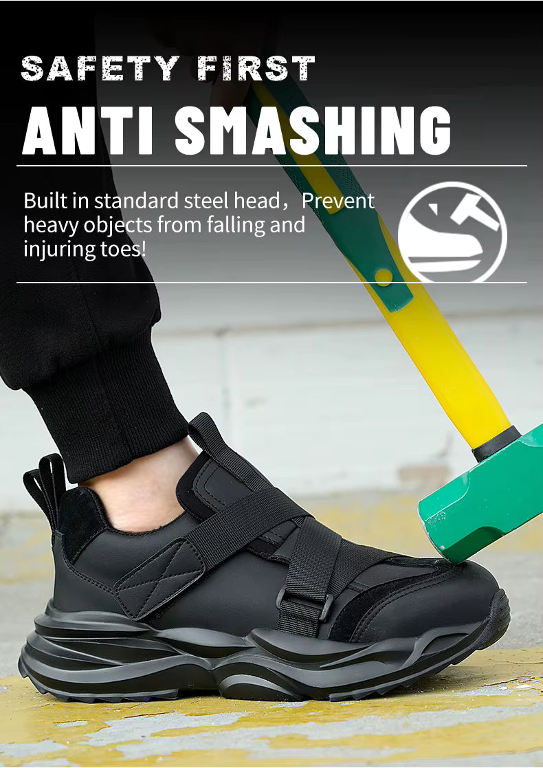 The PowerGuard slip-on safety sneakers are designed for workers who value speed, comfort, and strength. With their laceless strap system, durable construction, and all-black modern style, they deliver maximum protection without compromising on convenience. Perfect for long shifts, demanding environments, and anyone who needs safety shoes that are quick and easy to wear.